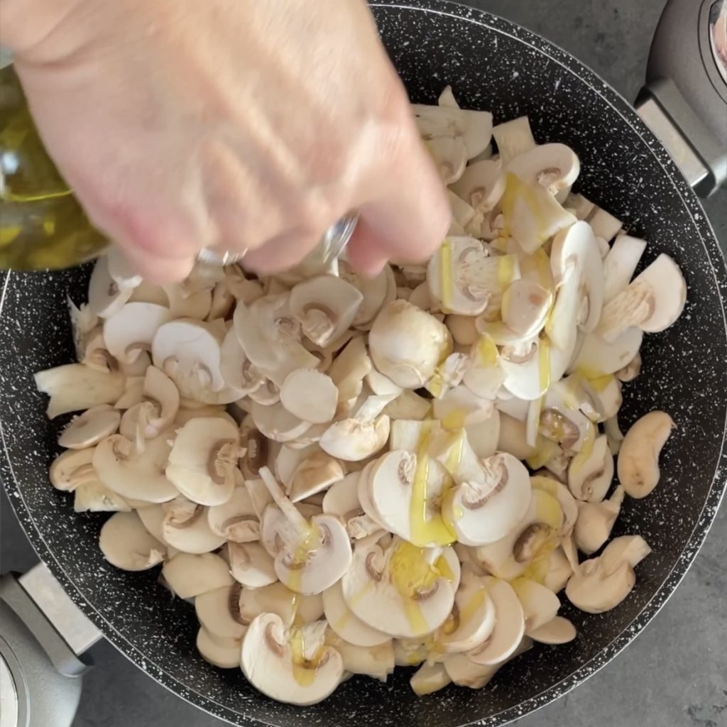 • Comenzamos a preparar el pastel de calabaza, limpiad los champiñones, lavadlos rápidamente bajo el agua corriente y cortadlos en rodajas o en trozos pequeños, luego ponedlos en una cacerola,