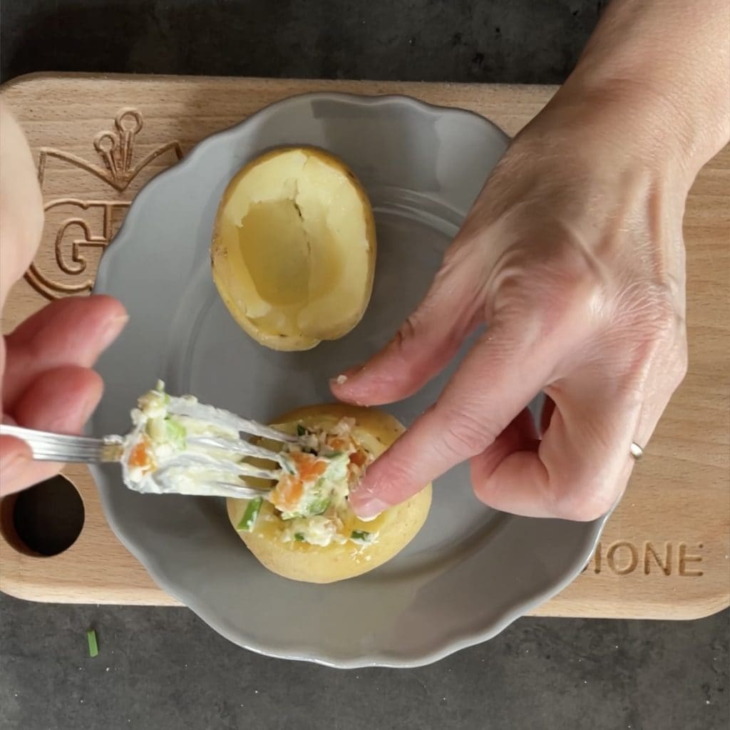 Coloca en el frigorífico durante al menos media hora antes de servir las patatas rellenas vegetarianas