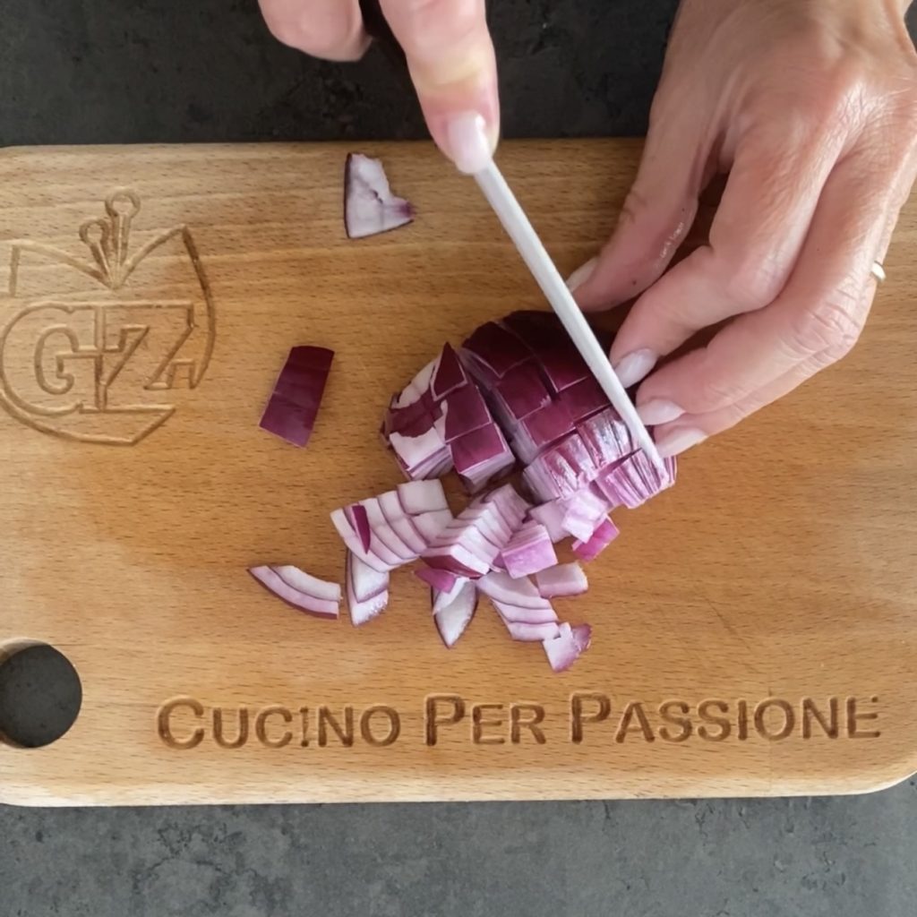• Mientras tanto, limpiad la cebolla y cortadla groseramente,