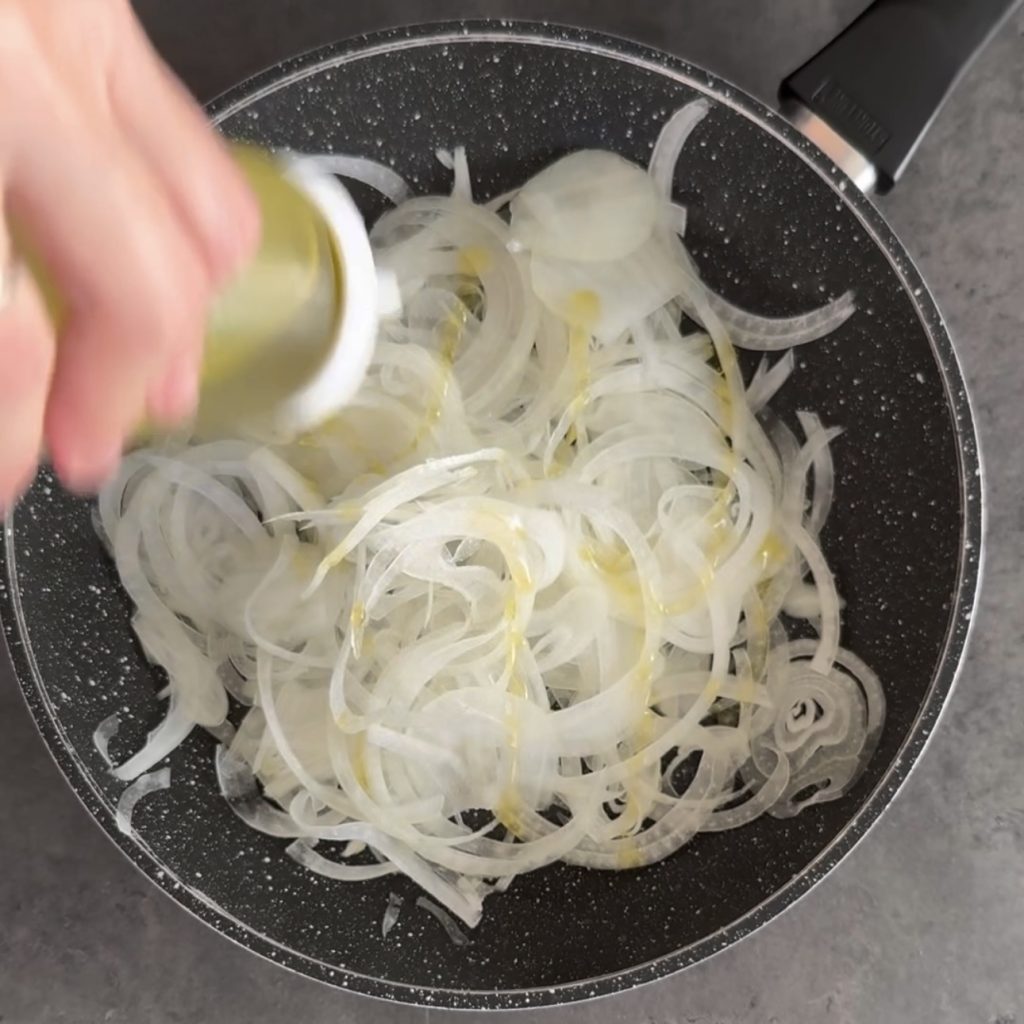 Comenzamos a preparar la Pechuga de pollo con cebolla, corta finamente la cebolla con la mandolina,
