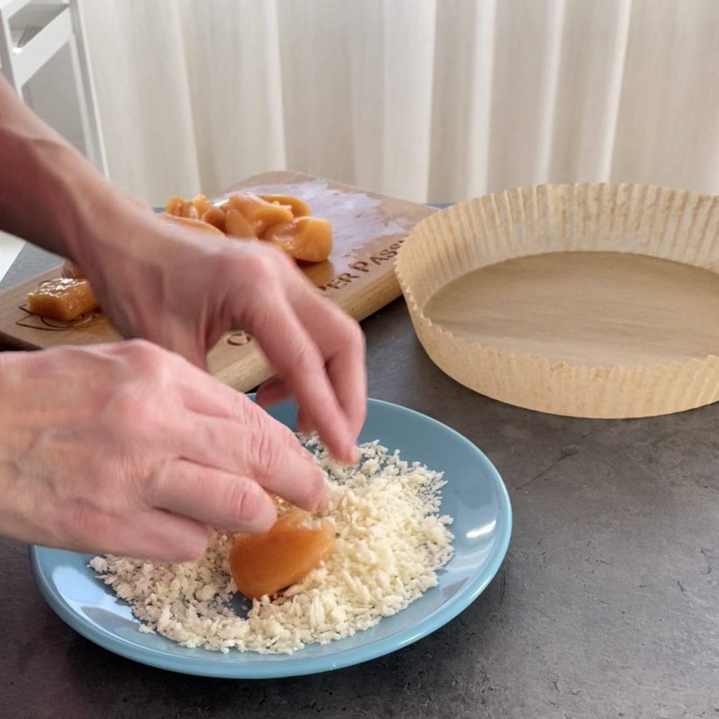Colocad la bandeja en la cesta de la freidora de aire y cocinad a 190°C por 20 minutos, a mitad de cocción abrid la cesta y girad los trozos.