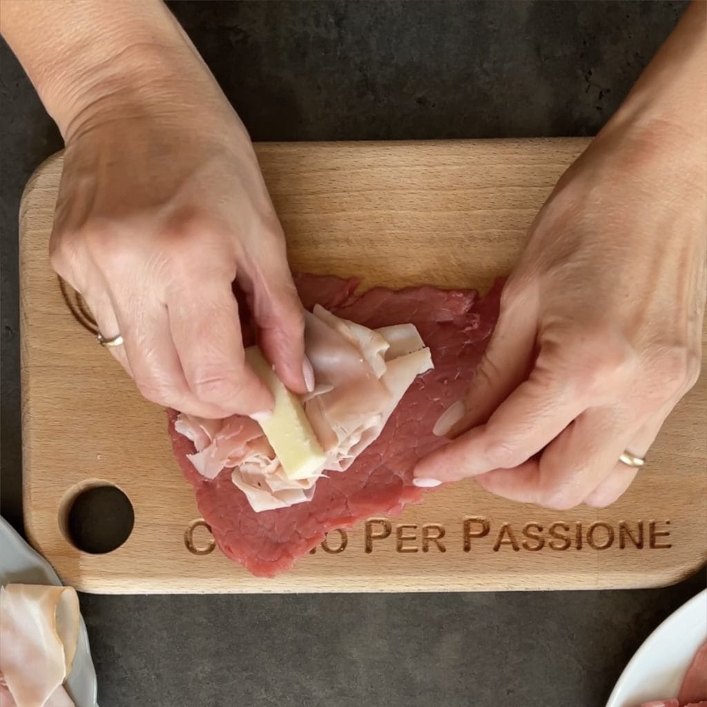Rollitos de carne en salsa un delicioso segundo plato simple, sabroso y fácil de hacer; la carne se mantiene tierna y jugosa. Los rollitos de carne en la sartén con salsita los puedes preparar como lo hice yo con filetes finos de ternera o también puedes usar filetes de ternera de leche. Asegúrate de preparar el pan porque la salsa con los rollitos de carne es fabulosa y tendrás que hacer barquitos, o también puedes usarla para condimentar la pasta. Para rellenar los rollitos en salsa he usado jamón cocido y queso fundente, como mozzarella para pizza, scamorza o provola. Ahora vamos a ver cómo hacer los rollitos de carne en salsa y si los pruebas, házmelo saber. Barbara