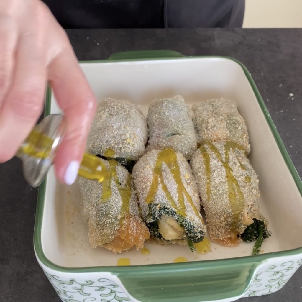 Rollitos de pollo con espinacas sabrosos y fáciles de hacer, un segundo plato perfecto para cualquier ocasión, incluso las más especiales. Estos rollitos de pollo empanados al horno tienen un relleno de espinacas y provola ahumada, tienen un gratinado crujiente que hace que la pechuga de pollo se mantenga jugosa y no seca y correosa, podéis usar tanto espinacas frescas como congeladas. Además de al horno, podéis cocinar los rollitos de pollo en freidora de aire siempre tendréis un empanado crujiente y el pollo jugoso, pero los cocinaréis en menos tiempo. El tiempo de cocción en airfryer podría variar según el tipo de freidora de aire que uséis, esta es la FREIDORA de aire que uso yo. Os recomiendo ver todas las recetas de ROLLITOS DE CARNE, las 50 RECETAS PARA LA FREIDORA DE AIRE y todas las recetas con la freidora de aire, seguro que encontraréis otros platos deliciosos para probar. Ahora vamos a ver cómo hacer los rollitos de pollo con espinacas y si los probáis, hacedmelo saber. Barbara