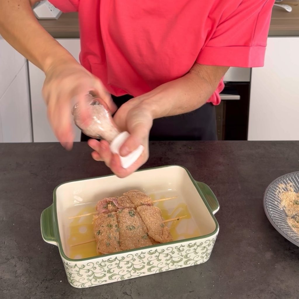 y un par de puffs de aceite para que el empanado sea más crujiente.