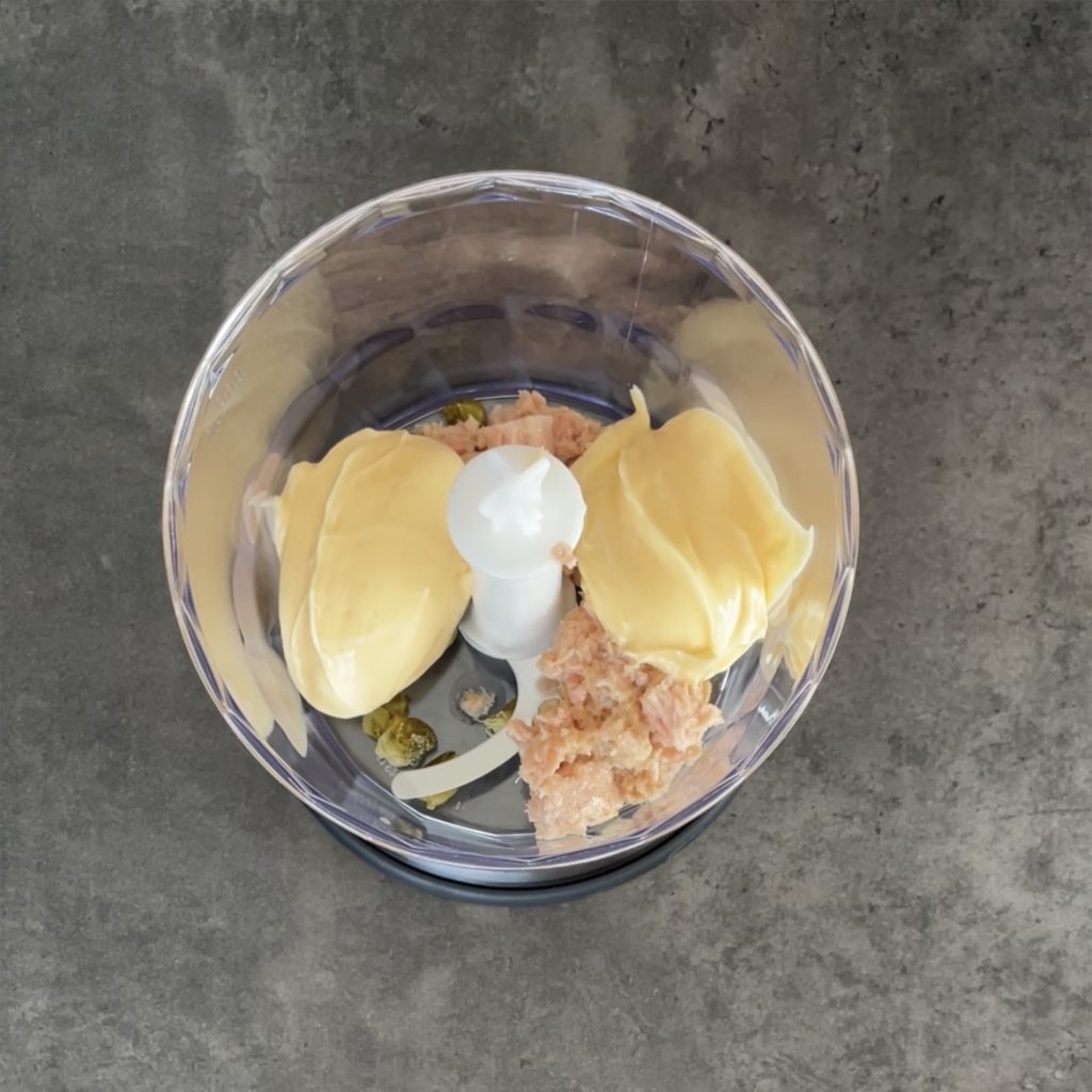 • comenzamos a preparar los rollitos de sándwich de atún, prepara la salsa de atún simplemente vertiendo en el vaso de la licuadora las alcaparras,