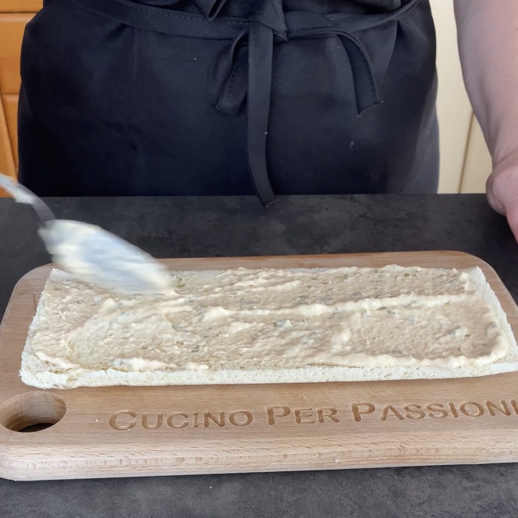 • Con un rodillo extiende las rebanadas de pan, de esta manera no se romperán al enrollarlas.