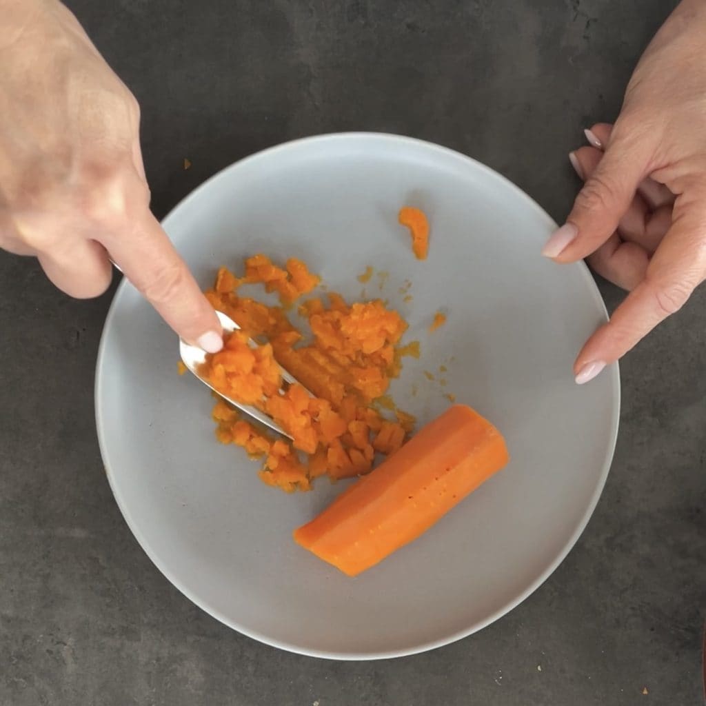 • Cuando la zanahoria esté cocida, sacadla del agua y machacadla bien con un tenedor.