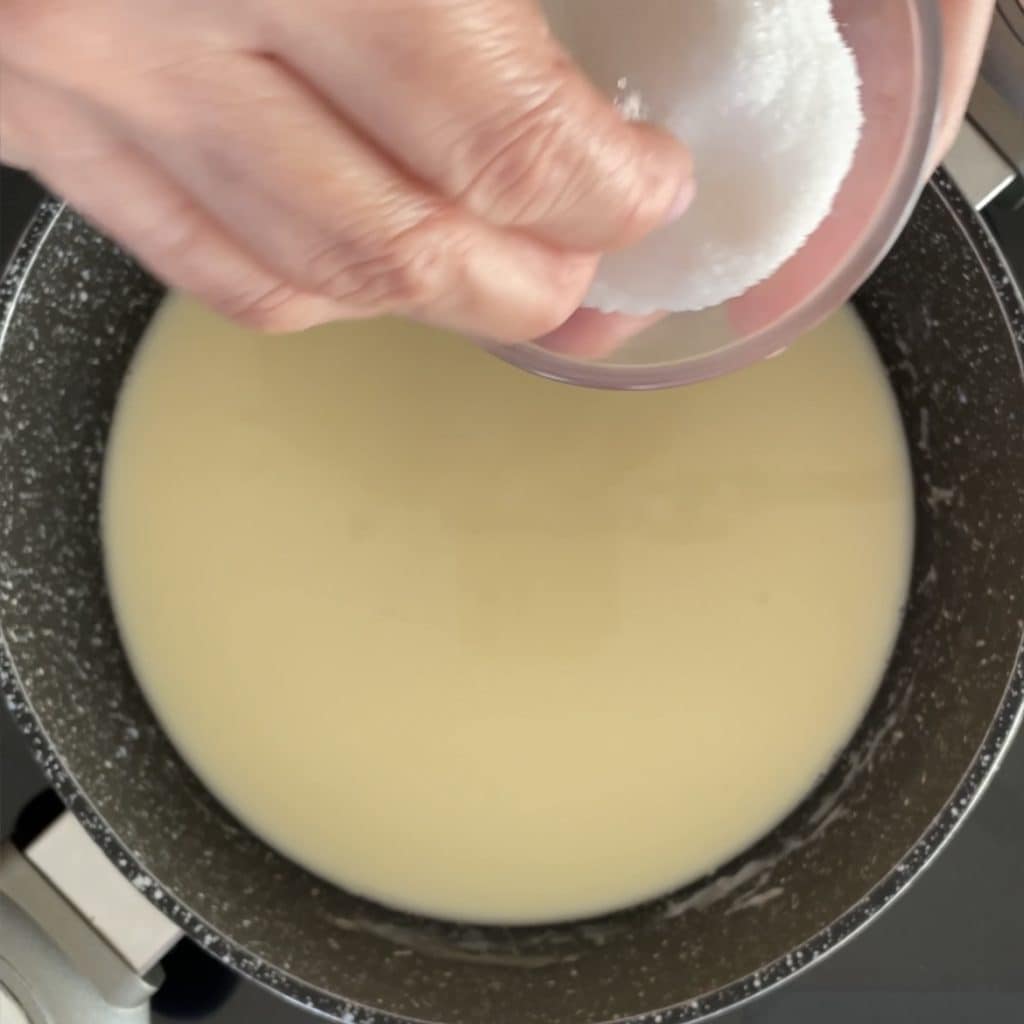 coloca al fuego y lleva a ebullición siempre mezclando suavemente, cuando empiece a hervir verás que se espesa, baja el fuego y deja unos minutos más, luego retira y deja enfriar.