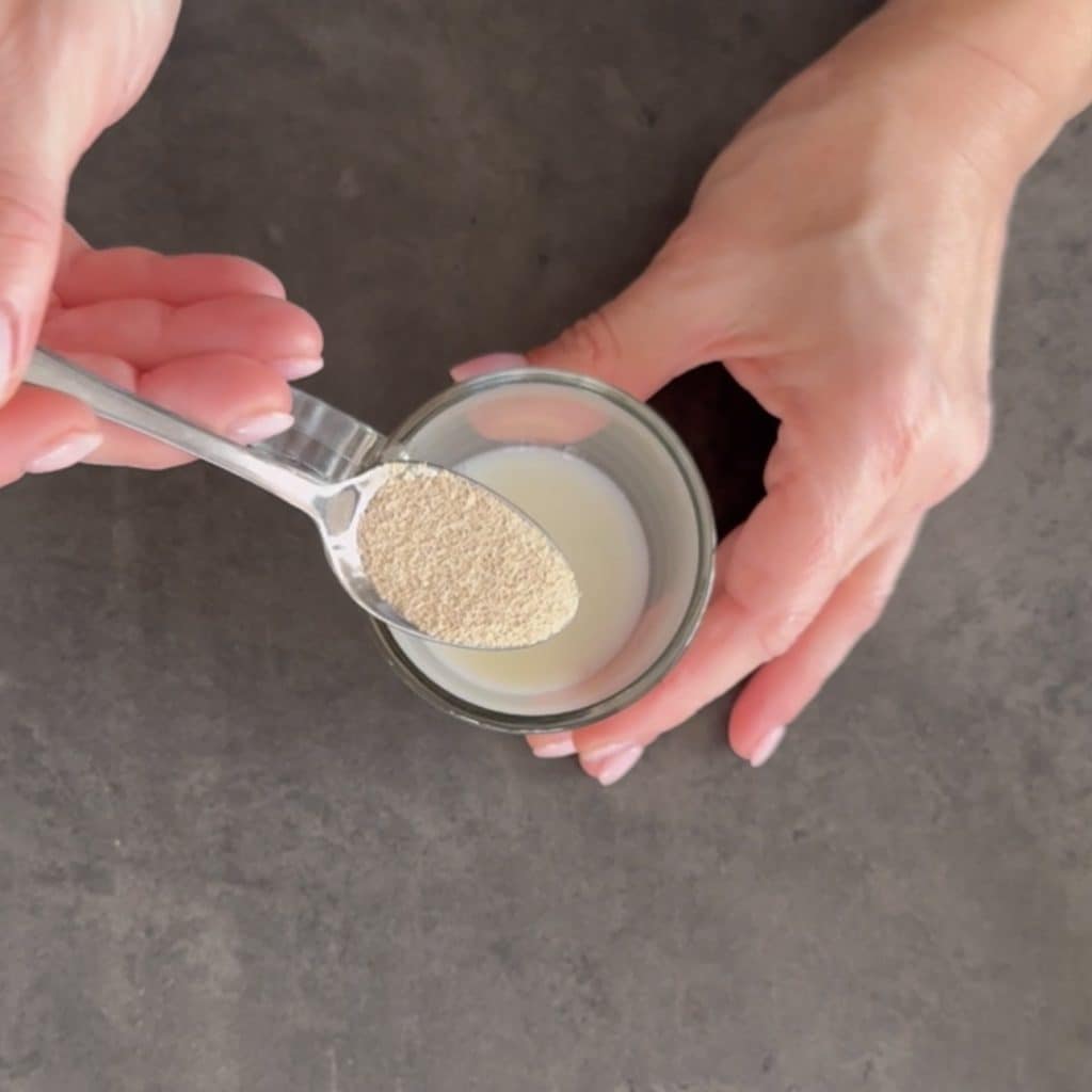 Vierte la leche en una taza y también la levadura de cerveza, mezcla bien para disolverla.