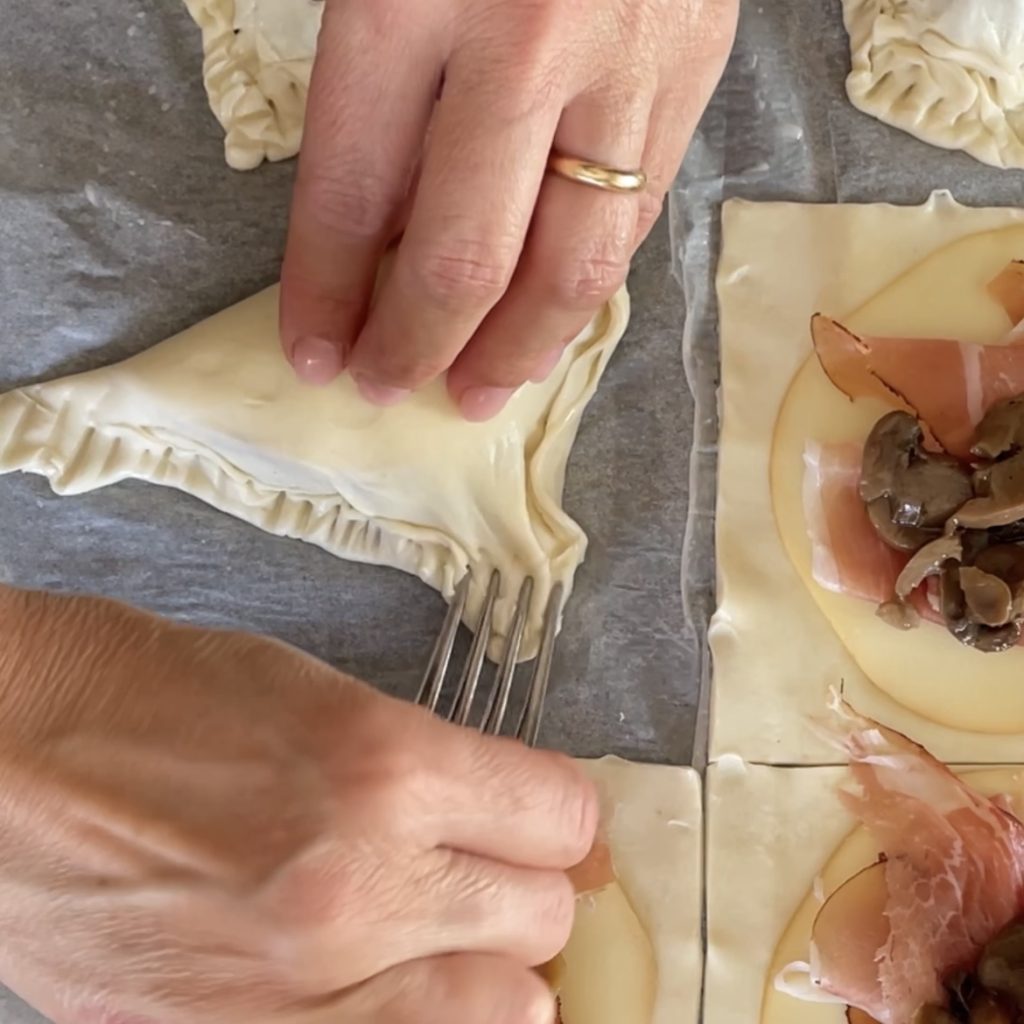 Te aconsejo consumir los rústicos con setas y speck en el día para disfrutar de la fragancia del hojaldre, al día siguiente el hojaldre estará más gomoso y no crujiente.