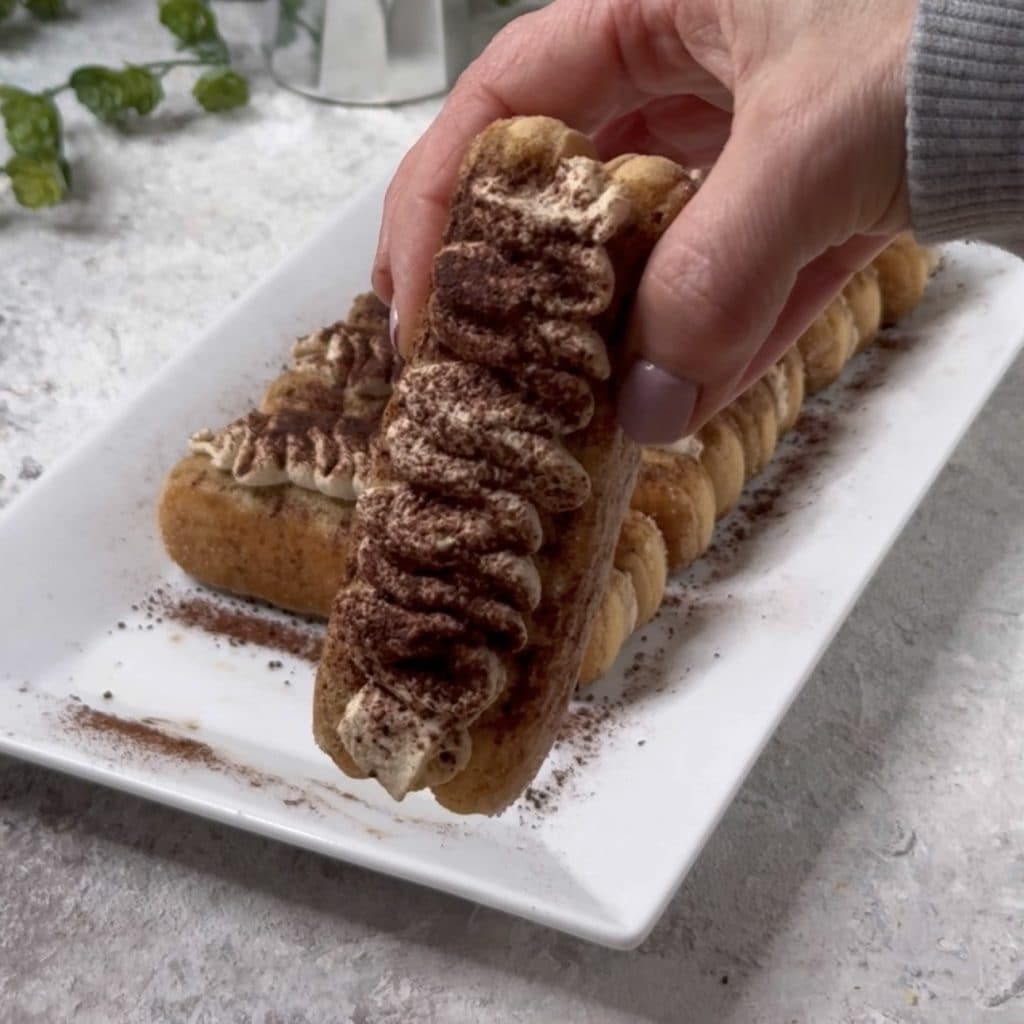 Savoiardi con crema de café un delicioso y fácil postre perfecto para servir como cierre de comida o para acompañar un café, estos dulces con savoiardi al tiramisú también los podéis servir en un buffet. Estos savoiardi al café no necesitan cocción, por lo tanto, son perfectos también durante el periodo veraniego cuando no apetece encender el horno. Ahora vamos a ver cómo hacer los savoiardi con crema de café y si los probáis, hacédmelo saber. Barbara