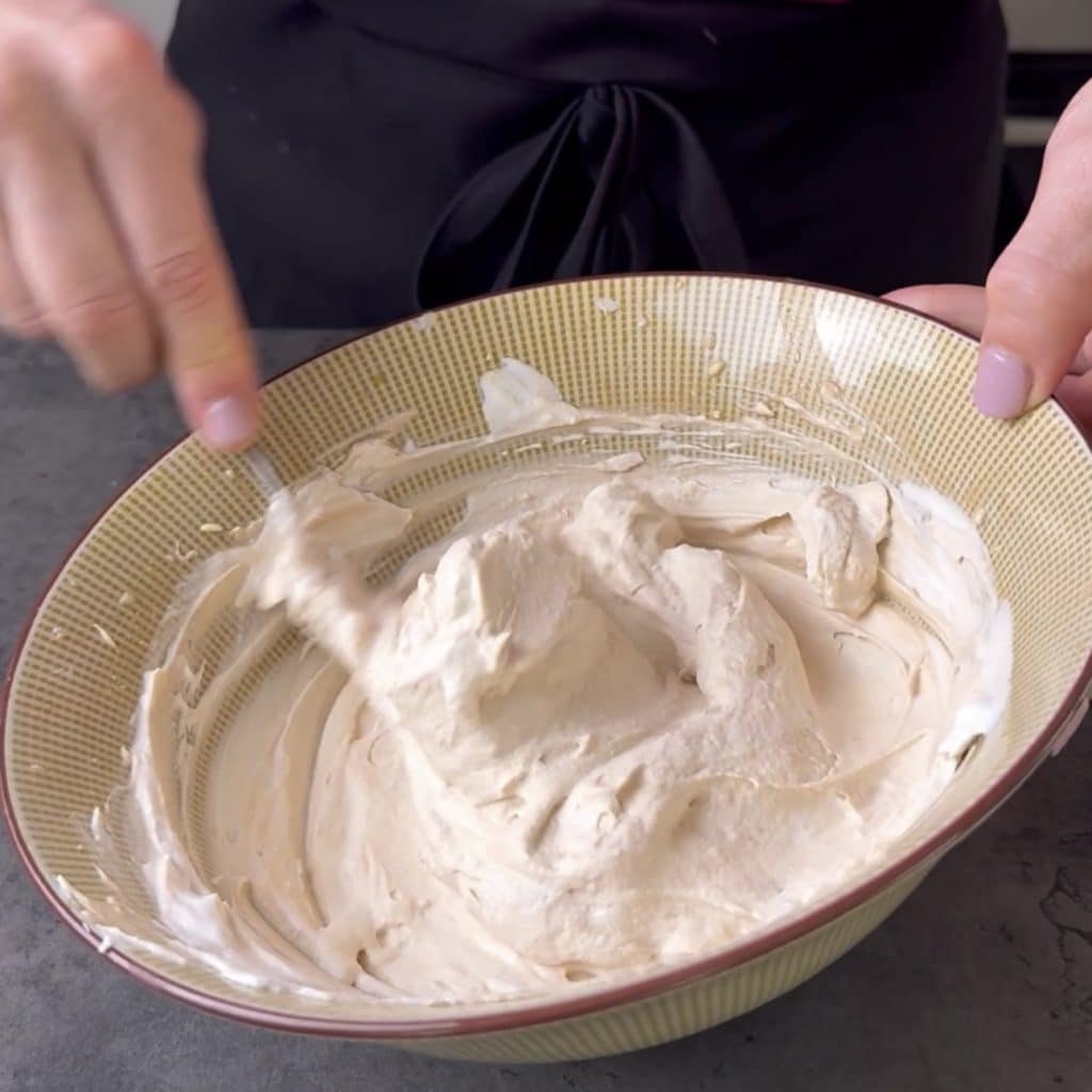 hazlo incorporar con un tenedor o una espátula y con movimientos de arriba abajo para no desmontar la crema.