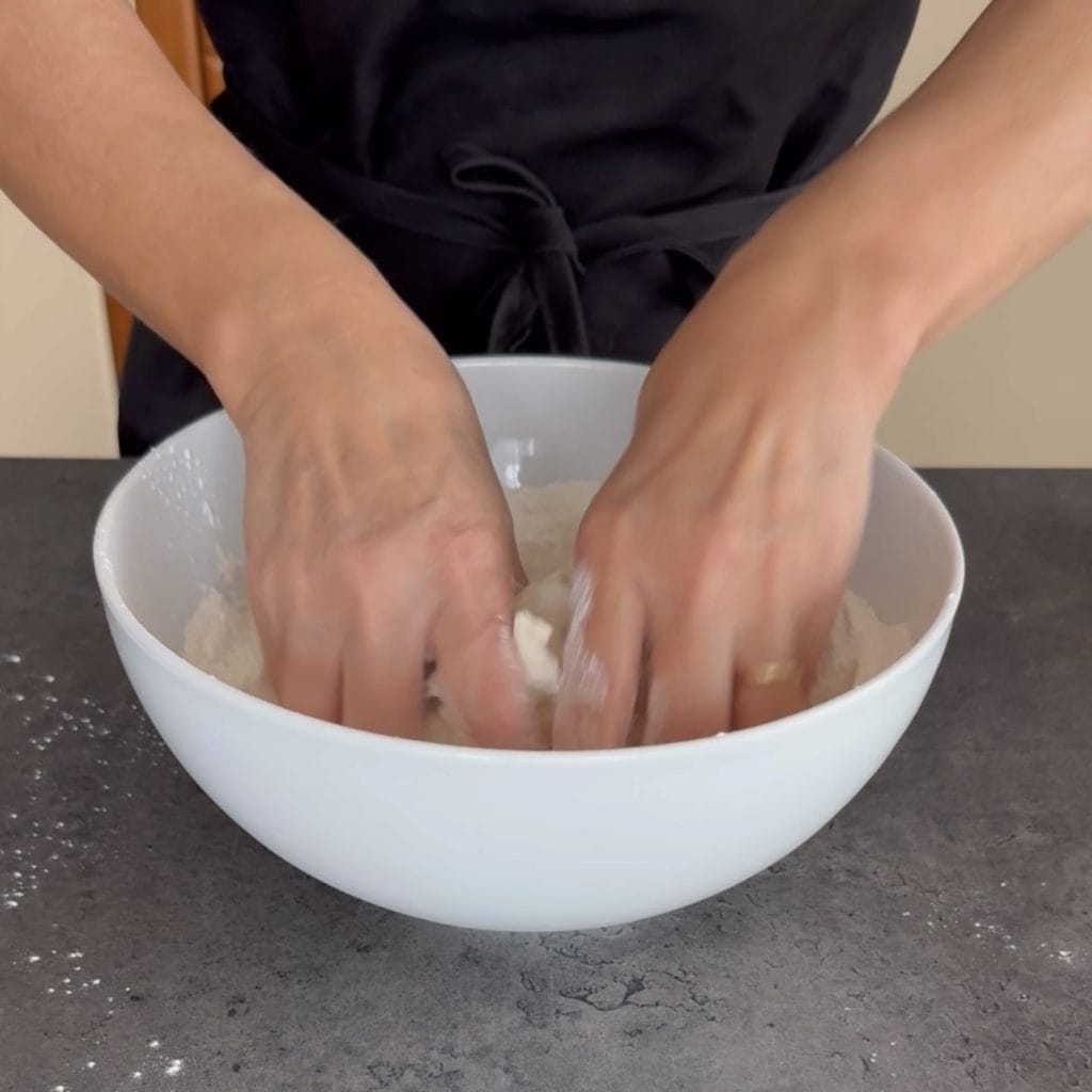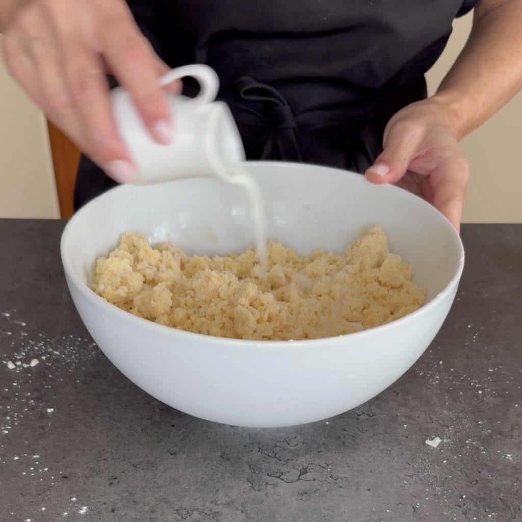 agreguen la leche y amasen hasta obtener una mezcla compacta