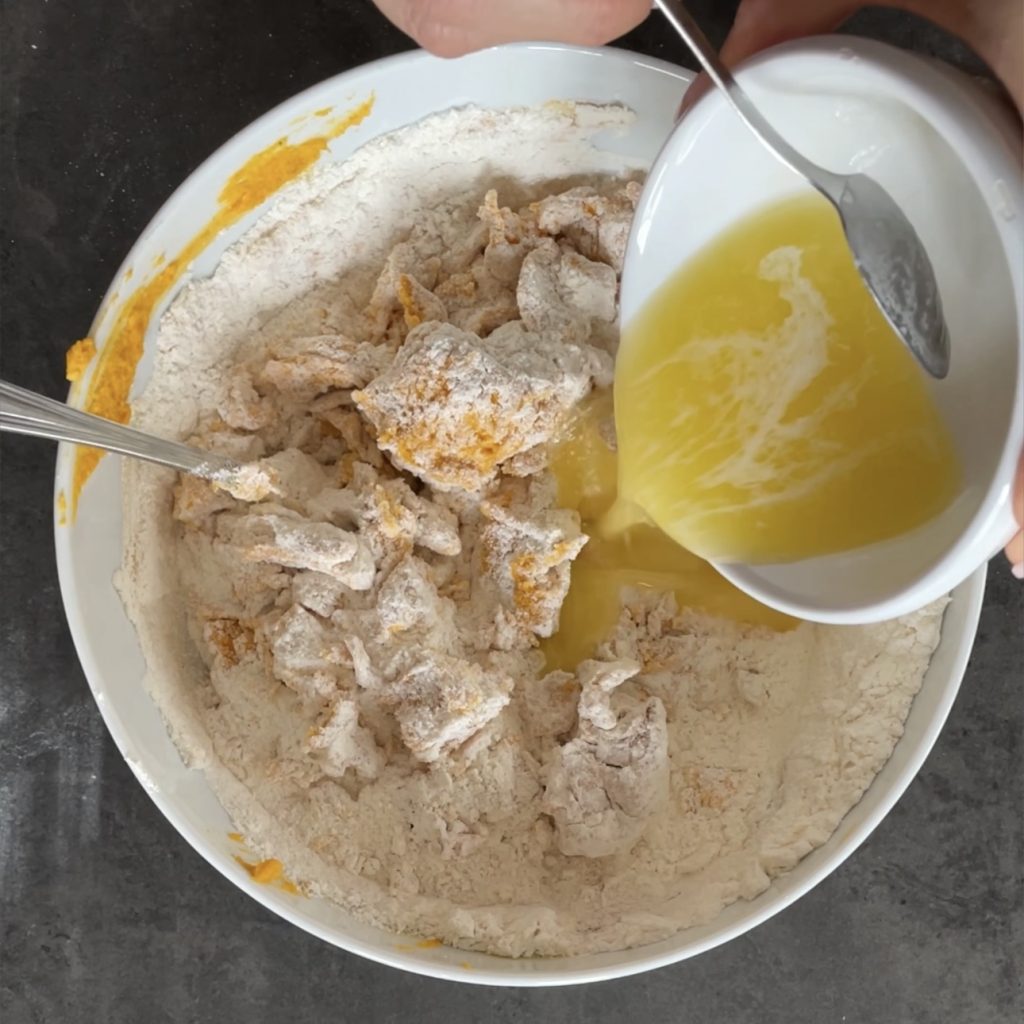 Comenzamos a preparar la tarta de calabaza y chocolate, para cocinar la calabaza puedes asarla en el horno o cocinarla en la freidora de aire, para cocinarla en el horno corta la calabaza en rodajas, elimina las semillas y los filamentos internos y coloca luego las rodajas en la bandeja del horno, cubierta con papel de horno y cocínala en el horno precalentado a 180° durante 40 minutos, o cocínala en airfryer siguiendo la receta CALABAZA EN FREIDORA DE AIRE. Cuando la calabaza esté lista, pon la pulpa en un plato y aplástala con un tenedor para obtener un puré.