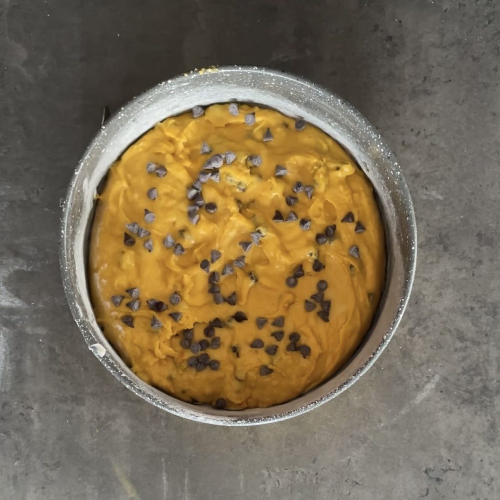 Tarta de calabaza y chocolate, un delicioso y fácil pastel para disfrutar en cualquier momento del día, también puedes calentarla unos segundos en el microondas para saborear mejor su sabor y aroma. La tarta de calabaza es húmeda y casi cremosa, si deseas, puedes añadir un poco de canela para resaltar aún más el sabor y el aroma. Para realizar la tarta de calabaza de la abuela he usado un molde de 24 cm, si tienes un molde más pequeño de 18 o 20 cm, reduce las cantidades o puedes usar un molde con agujero para hacer un bizcocho de calabaza y chocolate, o si deseas, puedes usar la misma masa para hacer un plumcake de calabaza y chocolate. El dulce de calabaza es perfecto para los niños que quizás tienen dificultades para comer verduras, de esta manera ni se darán cuenta de que lleva calabaza y con su bonito color naranja y las gotas de chocolate estarán encantados de comerla. Te recomiendo que pruebes también los MUFFINS DE CALABAZA y chocolate. Ahora vamos a ver cómo hacer la Tarta de calabaza y chocolate y si la pruebas, házmelo saber. Barbara