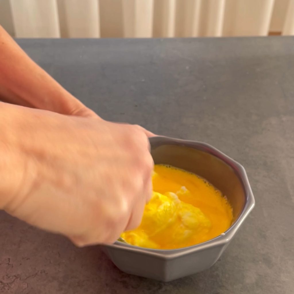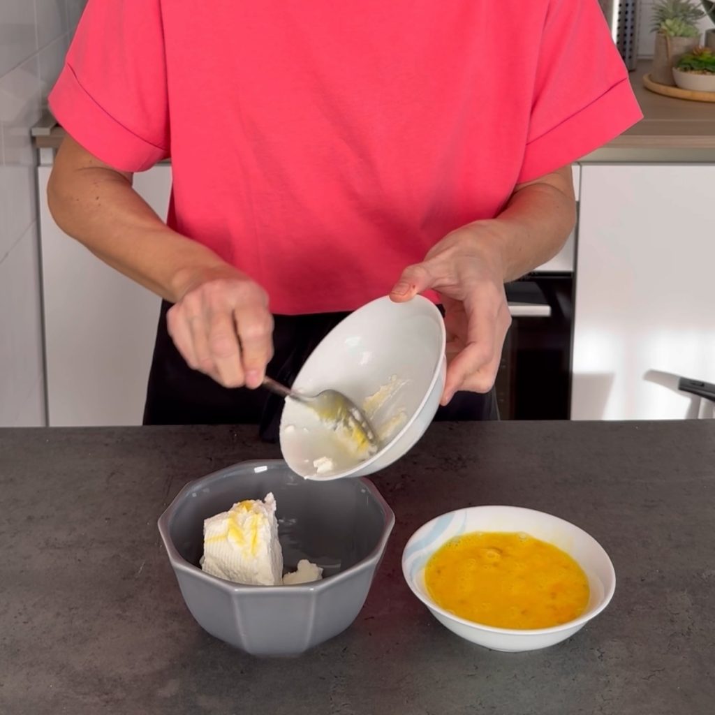en otro bol los huevos que batirá con un tenedor, añádalos luego a la ricotta