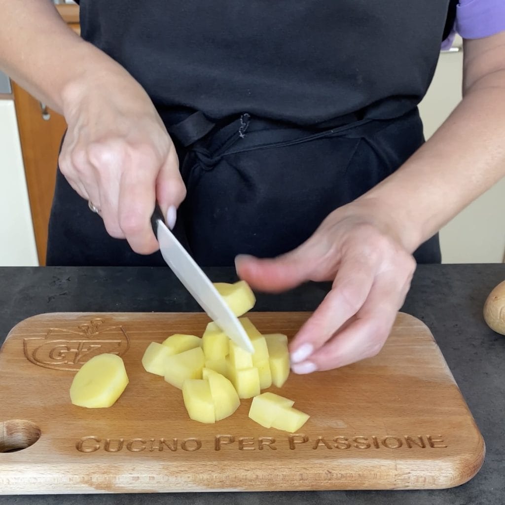 Empezamos a preparar la tarta salada patatas y speck, pela las patatas