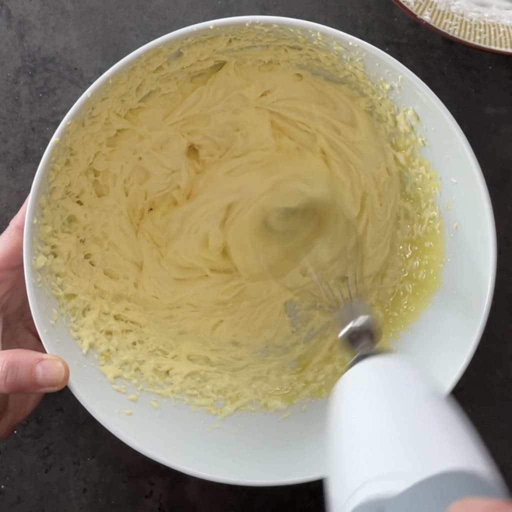 Preparan la crema de mascarpone, separen los huevos en un bol, viertan las claras y bátanlas a punto de nieve.