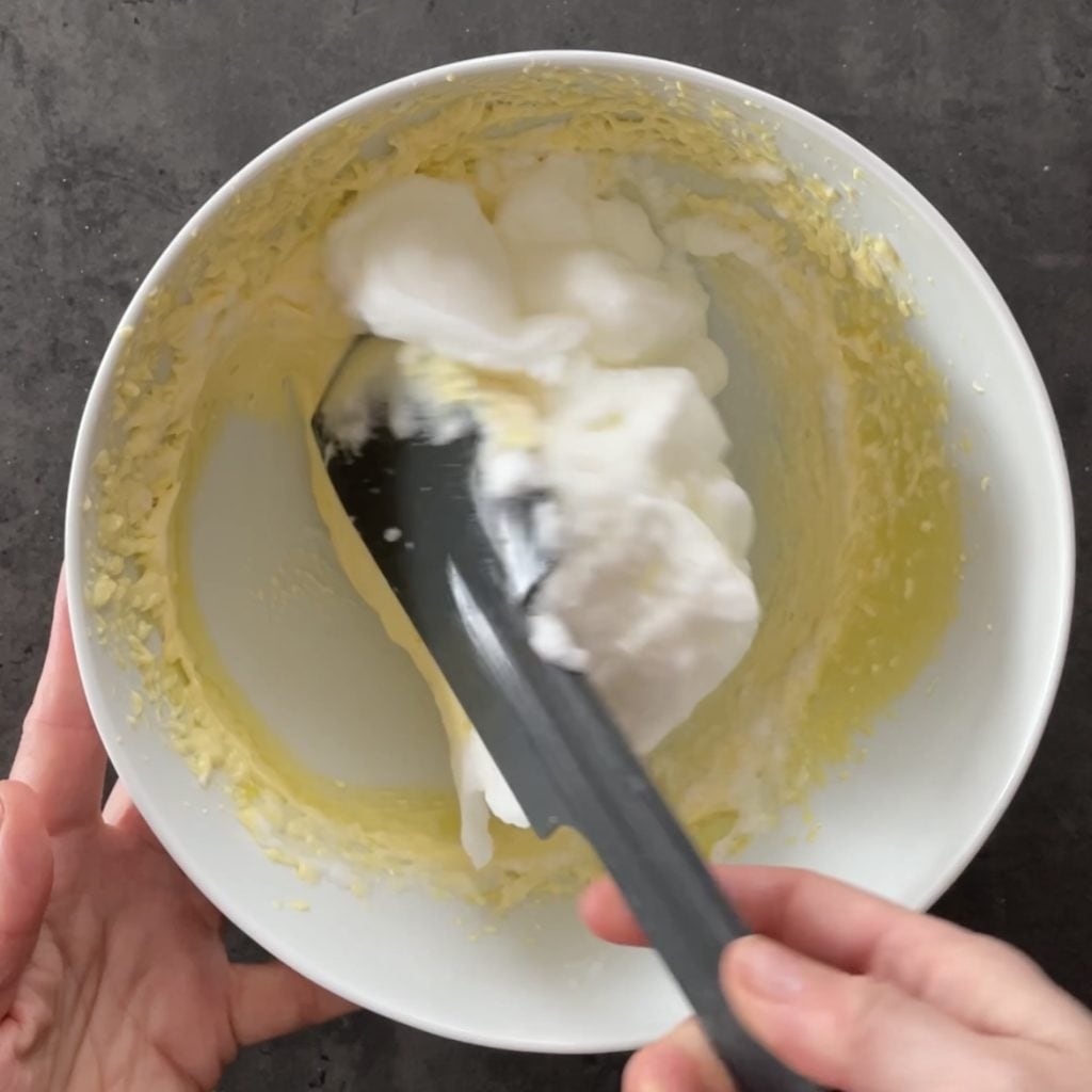 Ahora incorporen las claras a la crema y mézclenlas con una espátula de arriba hacia abajo para no desmontar la mezcla.