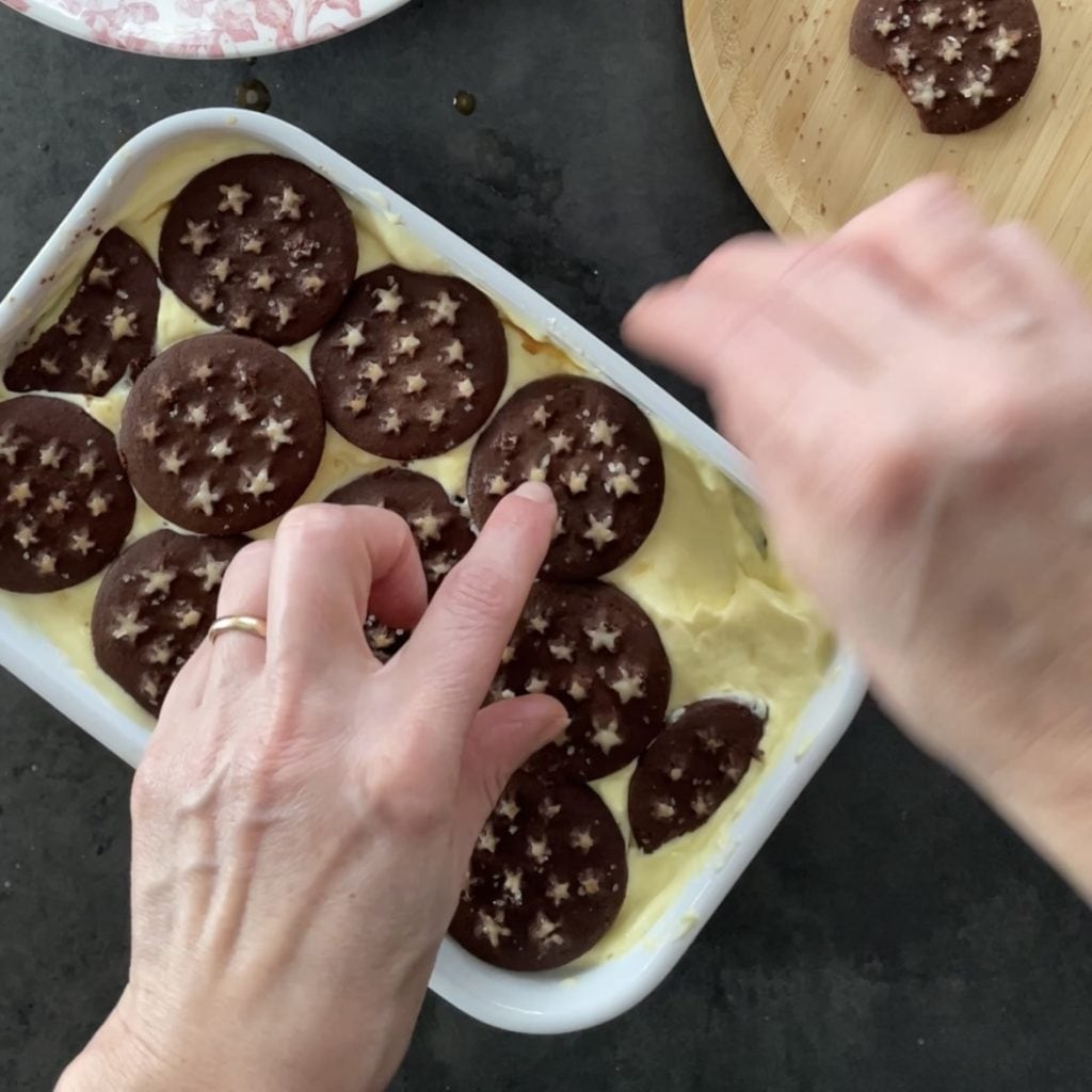 Otra capa de crema y terminen con una última capa de pan di stelle.