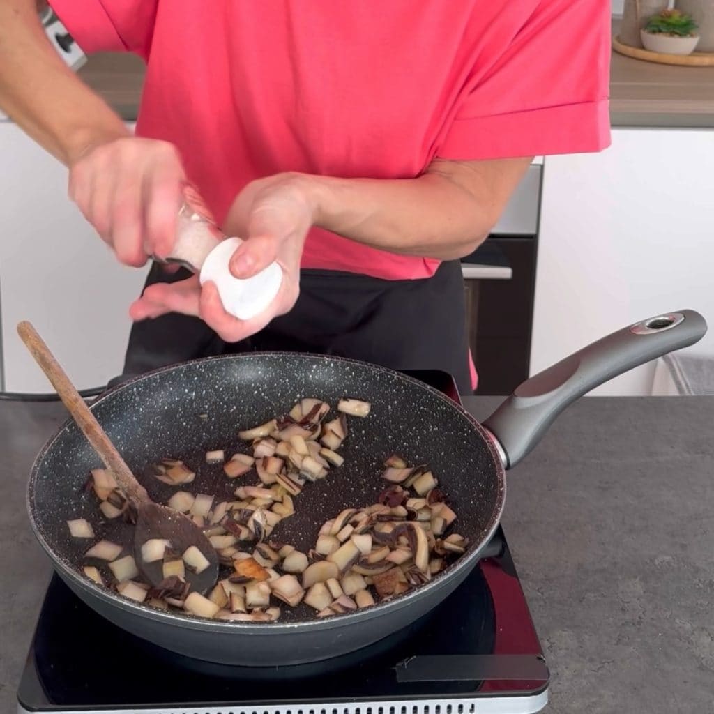 En la misma sartén donde cocinaste el radicchio, vierte un poco de aceite