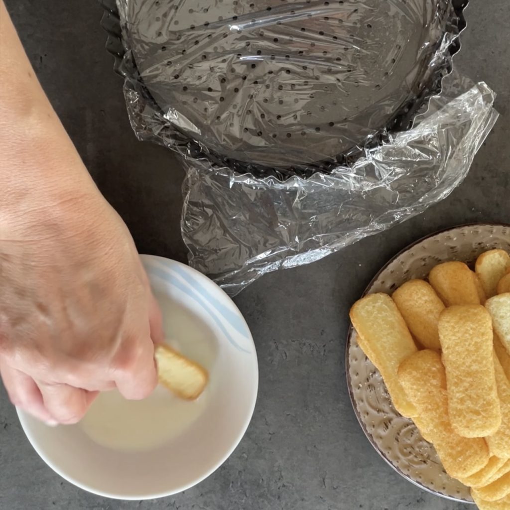 • y cubrimos con los pavesini siempre mojados en leche.