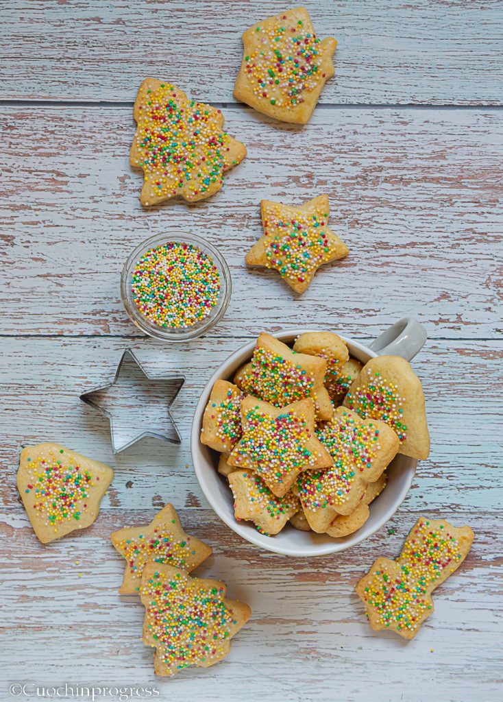 Los BEFANINI son unas galletitas clásicas de la tradición toscana que se preparan para las fiestas navideñas y, en particular, para la Epifanía. Son sencillas pero muy golosas, con formas navideñas, elaboradas con una masa quebrada blanda, muy aromática y decoradas con confetis de colores. Son ideales para poner en el calcetín de la Befana y para tomar en el desayuno o en la merienda.