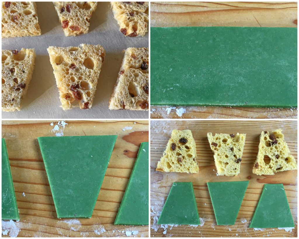 Recortad trapezoides e id haciendo lo mismo con el mazapán.