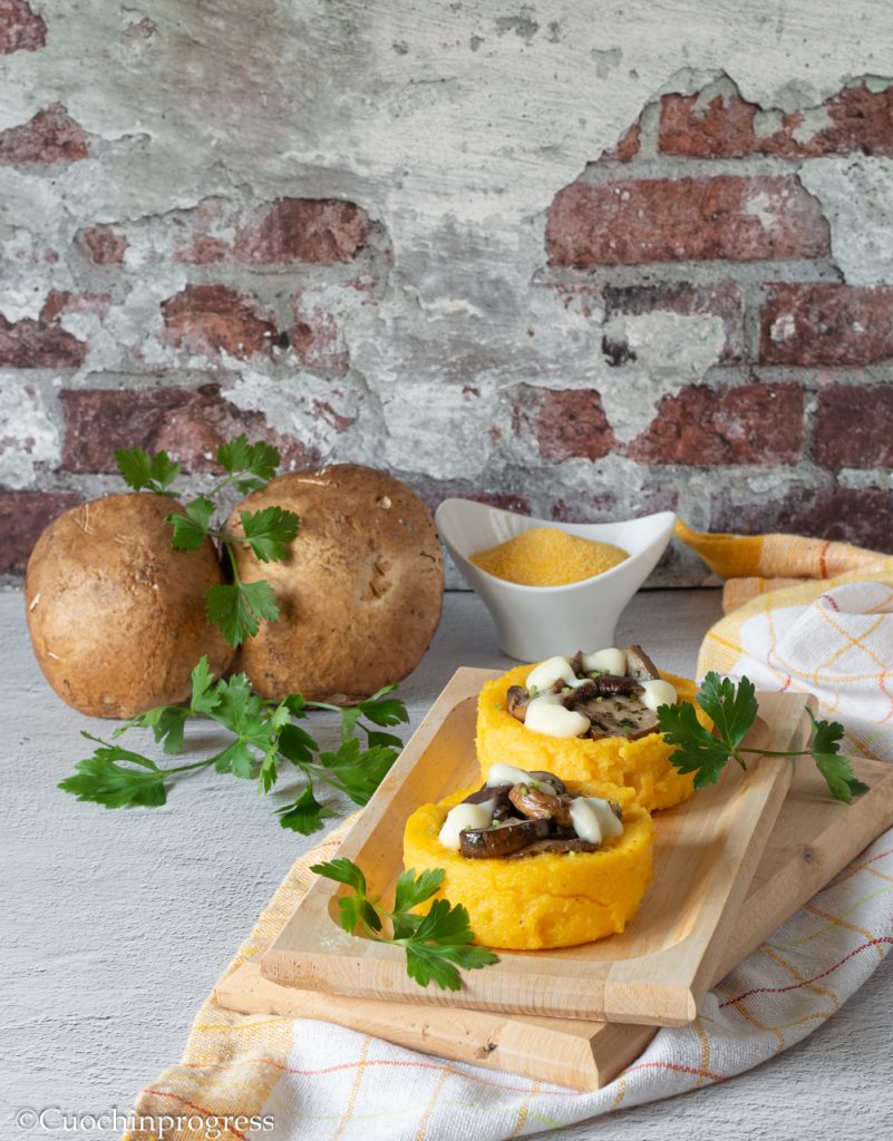 Los CESTITOS DE POLENTA CON BOLETUS Y CREMA DE PARMESANO son unas apetitosas raciones individuales en forma de cestito, rellenas con crema de parmesano y boletus, para servir como entrante durante un almuerzo o una cena invernal, para comenzar de la mejor manera una comida rústica pero elegante, en la mejor tradición de nuestro país. Un plato sencillo, pero de sabor equilibrado y realmente delicioso, que combina y armoniza sabores y texturas diferentes.
