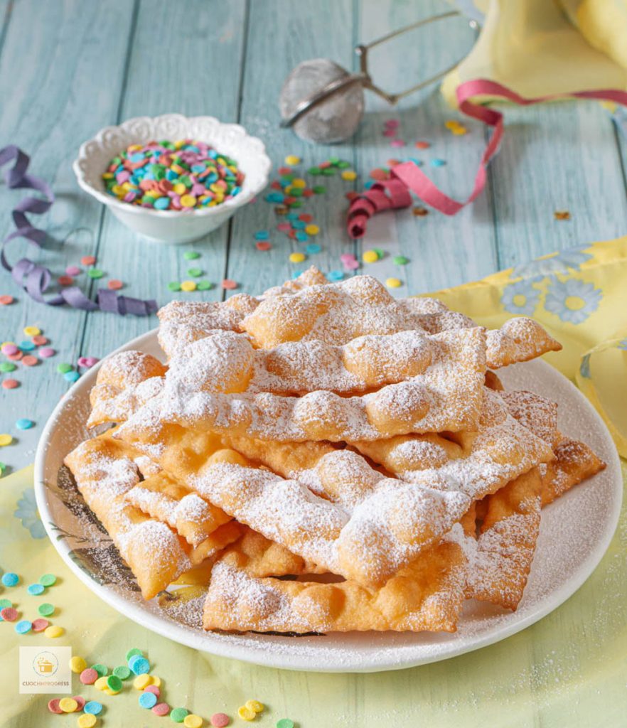 Las CHIACCHIERE son uno de los dulces simbólicos del Carnaval, periodo de fiesta y abundancia antes de la Cuaresma. Su ligereza y su textura crujiente las hacen irresistibles.
