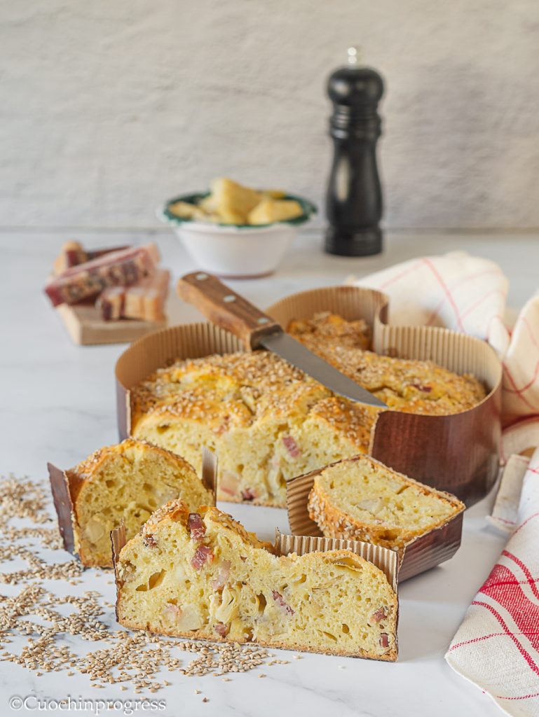 PREPARACIÓN COLOMBA SALADA CON ALCACHOFAS Y PANCETA