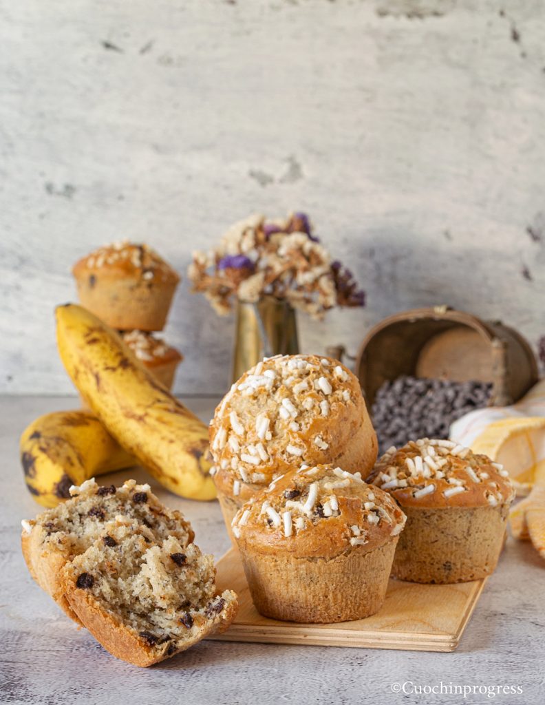 LOS MUFFIN DE PLÁTANO SIN HUEVOS son unos pastelitos muy esponjosos, rápidos de preparar, sabrosos, aromáticos y energéticos. Además de ser deliciosos, son aptos para quienes tienen intolerancia a los huevos. De hecho, gracias a los plátanos, cuya consistencia ligeramente pegajosa liga bien la masa, la hincha y la deja extraordinariamente esponjosa y perfumada, no notarás la ausencia de los huevos.