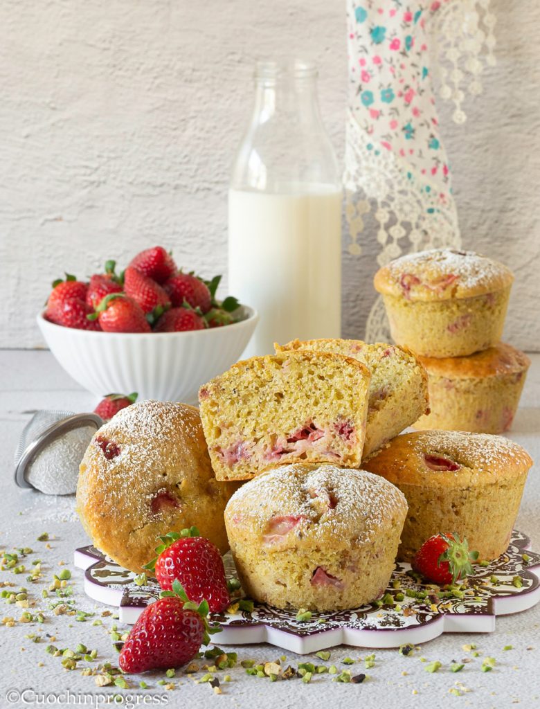 Su versatilidad los hace adecuados para cualquier ocasión, ya sea una fiesta de cumpleaños, un picnic al aire libre o simplemente un capricho para disfrutar a solas o en compañía. Con sus colores vivos y su sabor delicioso, los muffins de fresas y pistachos están llamados a convertirse en un nuevo clásico en tu recetario favorito.