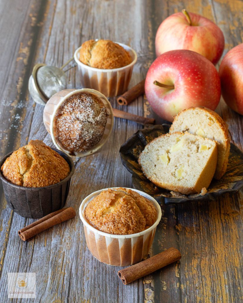 Los MUFFINS EN FREIDORA DE AIRE CON MANZANA son una versión rápida, muy esponjosa, ligera y aromática de los muffins clásicos, ideal para desayunos y meriendas golosas. La freidora de aire permite una cocción uniforme y esponjosa, con una costrita dorada en la superficie que realza la dulzura natural de las manzanas.