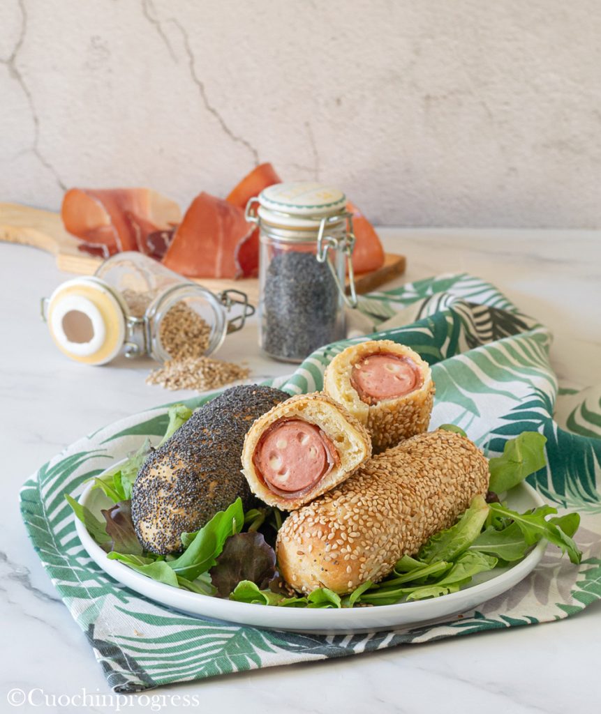 La preparación es muy sencilla: se envuelve una lámina de masa para pizza ya preparada alrededor del wurstel con queso, lo recubres con speck y lo horneas durante solo 15 minutos.