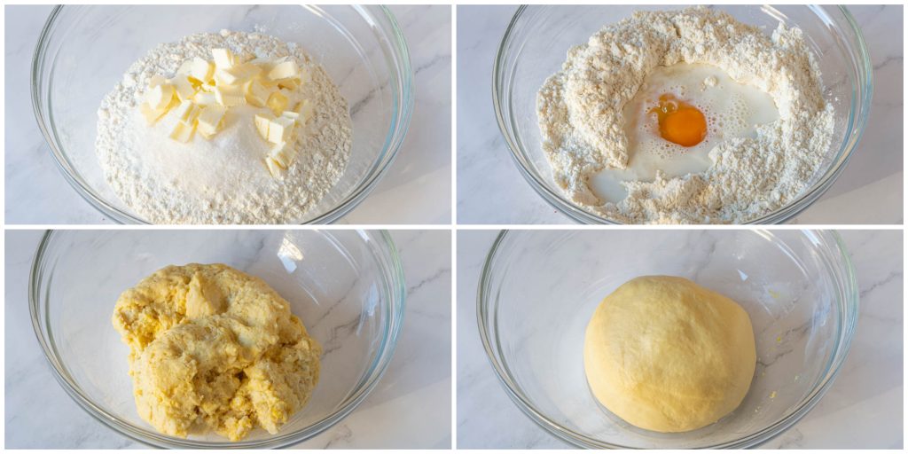 Trabaja los ingredientes hasta obtener una masa de textura arenosa y luego añade el huevo y la leche.