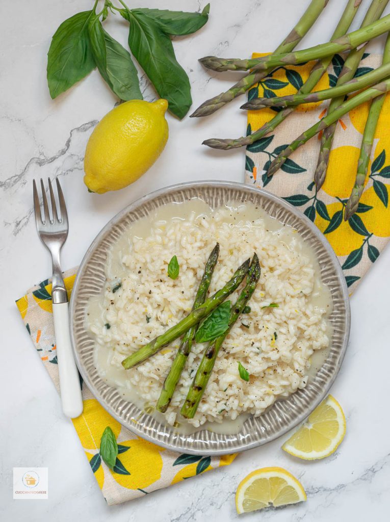El RISOTTO AL LIMÓN Y ESPÁRRAGOS es un primer plato refinado y de sabor fresco, perfecto para la temporada primaveral, cuando los espárragos están en su máximo esplendor. Es una receta que combina sabores delicados pero bien equilibrados, donde la cremosidad típica del risotto se encuentra con la nota cítrica y viva del limón y el sabor suave y ligeramente sabroso del queso Asiago.