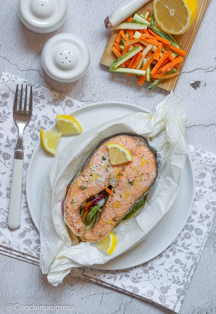 El SALMÓN EN PAPILLOTE es un segundo plato sano y lleno de sabor, perfecto para quien busca una alternativa ligera pero refinada. La cocción en papillote permite conservar todos los aromas y la suavidad del pescado, encerrándolos en un envoltorio que realza sus aromas y sabor.
