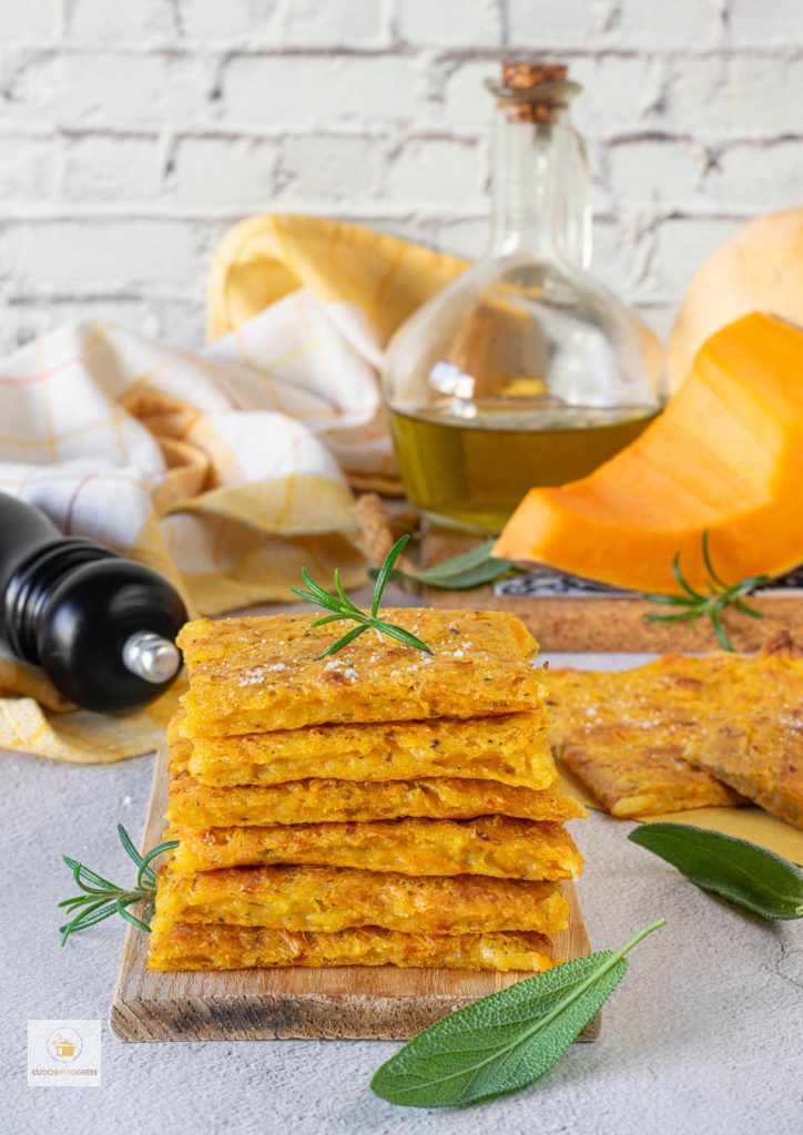 La calabaza, reina de la temporada, se transforma en una masa esponjosa y aromática, enriquecida con un chorrito de aceite de oliva virgen extra y una espolvoreada de romero y salvia que regalan un toque rústico y aromático.