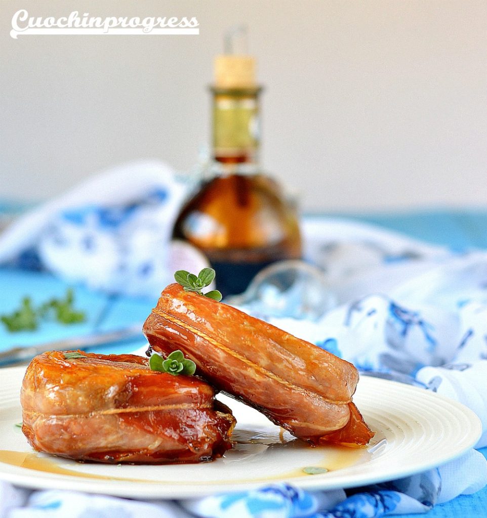 El SOLOMILLO DE CERDO CON MIEL Y SPECK es un segundo plato rápido, de sabor particular y muy sabroso. Adecuado para ocasiones importantes como una comida de fiesta o los domingos en familia, es fácil de preparar y el resultado está asegurado. Se acompaña muy bien con una guarnición sencilla, como una ensalada mixta, puré de patata o espinacas con mantequilla.