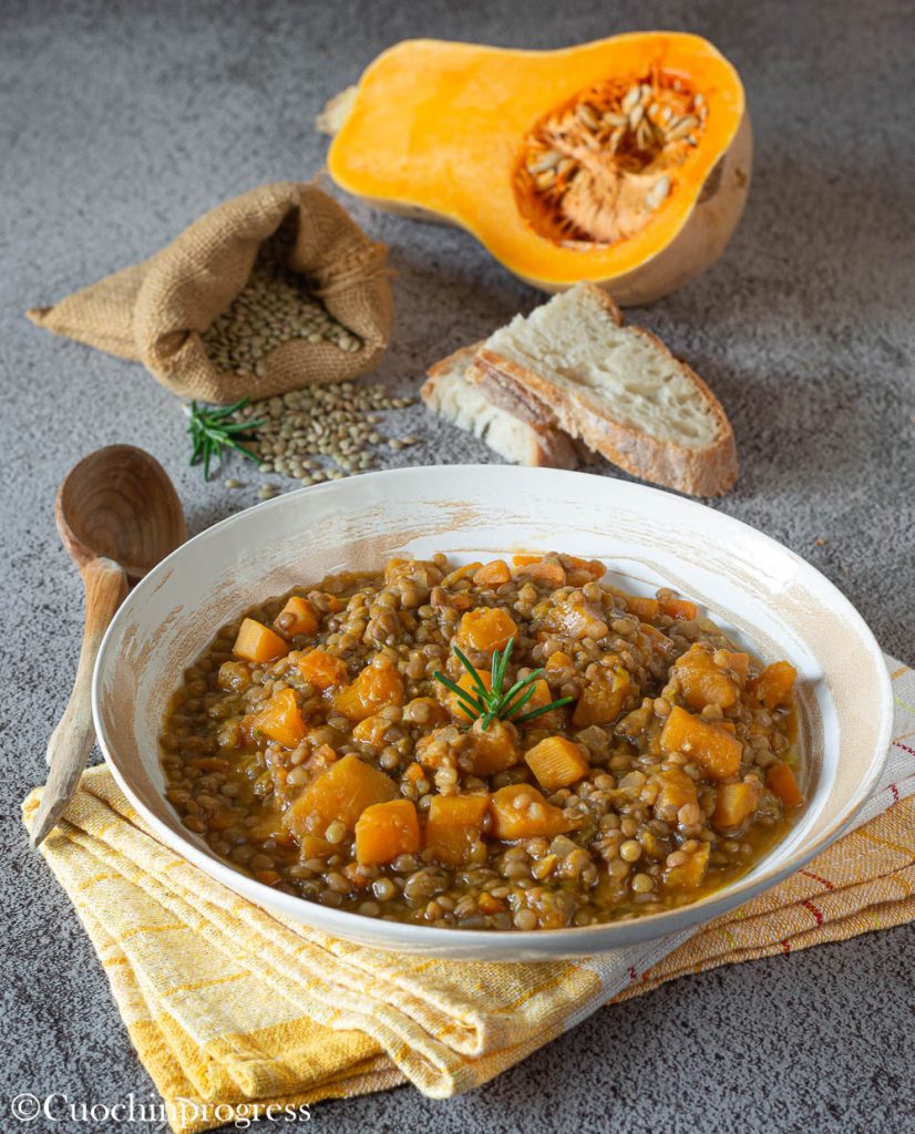 Sopa de lentejas y calabaza