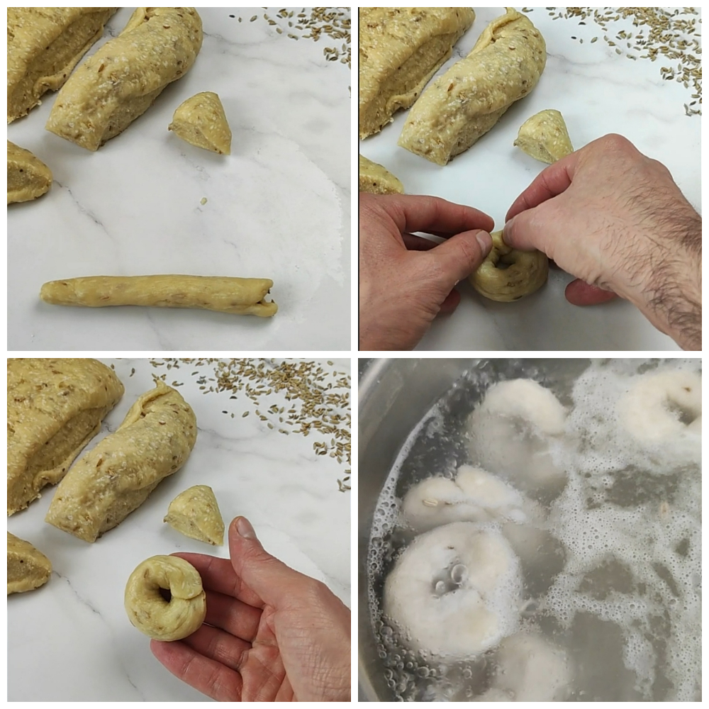 Une los dos extremos para formar taralli con hinojo de al menos 6-8 cm de diámetro y sella bien el punto de unión con los dedos.