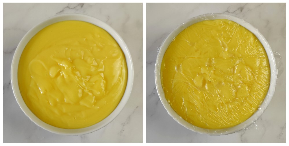 Una vez cocida, viértela en un bol, cúbrela en contacto con film transparente para evitar esa costra molesta en la superficie y deja que se enfríe completamente.