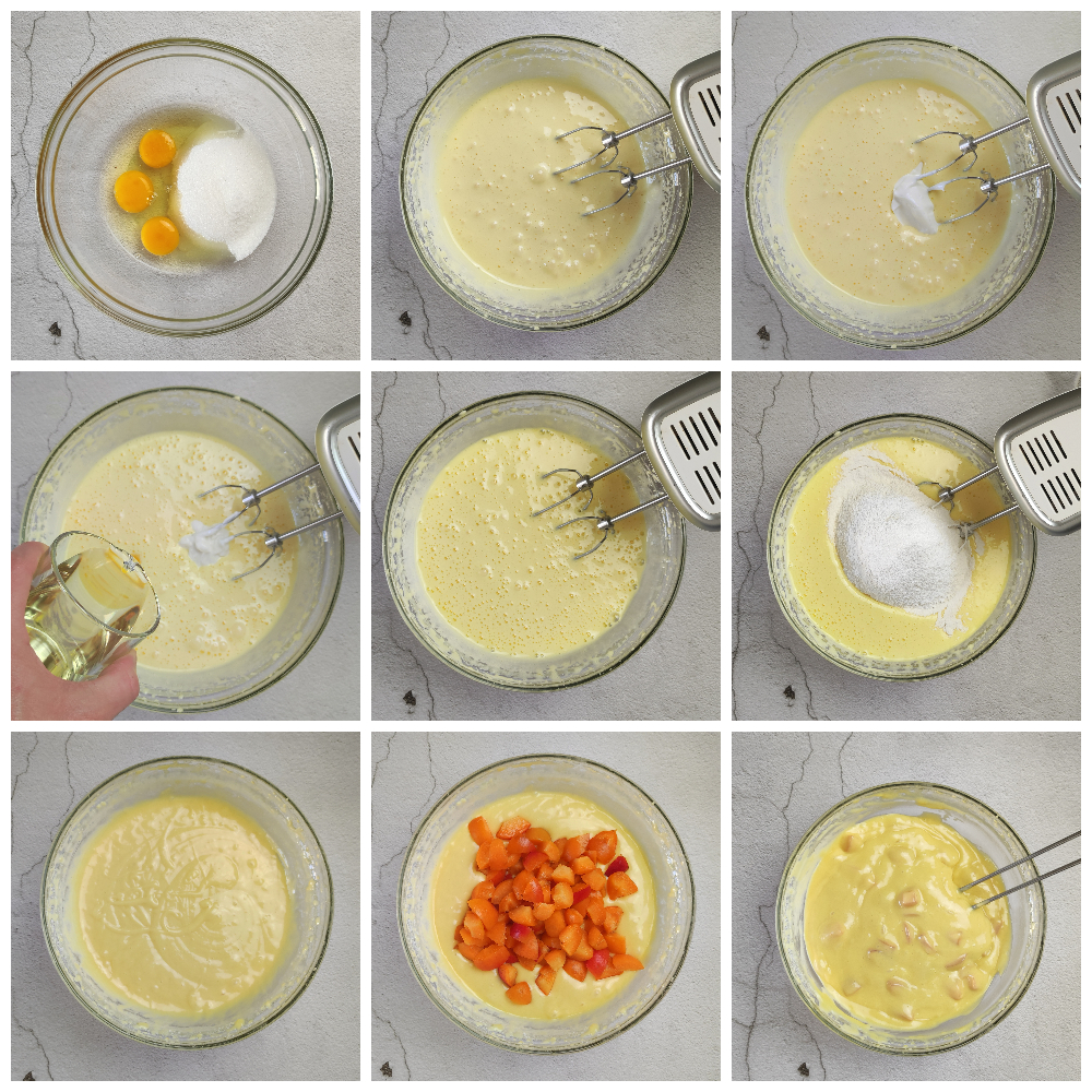Incorporad los albaricoques en cubitos a la masa, mezclad con delicadeza y vertedla en un molde de 22 cm engrasado y enharinado o en uno de silicona.