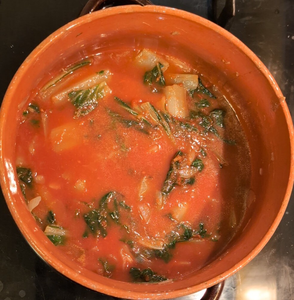 • Posteriormente, después de haber cocido la acelga junto con el sofrito, añadí el tomate pelado y sin añadir ningún otro líquido, lo cociné durante otros 10 minutos para que se redujera un poco.