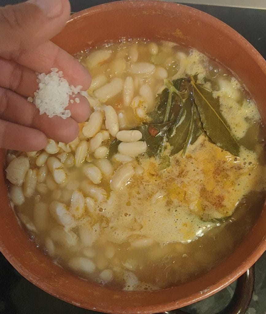 Esta es la prueba de que las legumbres están listas y ahora si quieres puedes probar y ajustar la sal.