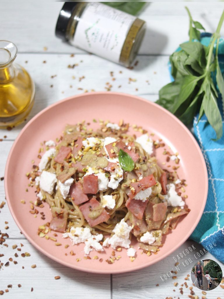 Para hacer esta receta he utilizado el pesto verde de Bronte D.O.P que puedes comprar también en el sitio web caracisicilyfood y puedes usar un descuento del 10% en todas tus compras utilizando el cupón Dadcook10.