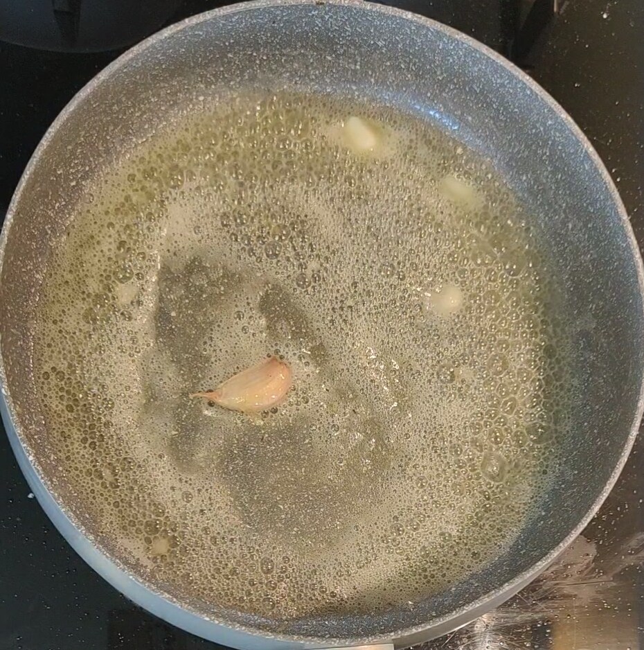 Finalmente con el fuego apagado he eliminado el diente de ajo y he añadido orégano seco al gusto.