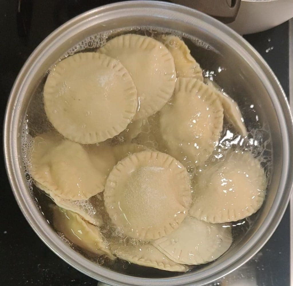 Mientras preparamos todos los ravioli habremos puesto el agua de la pasta a hervir para estar ya listos cuando hayamos cerrado el último ravioli.