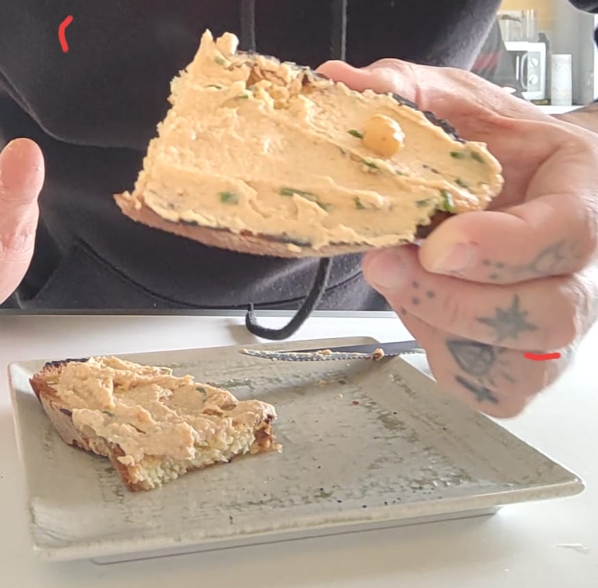 Concluimos con una cucharada de aceite de oliva virgen extra. Si prefieres un hummus más suave, puedes añadir una o dos cucharadas de agua caliente para ajustar la consistencia.